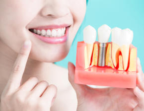 Inserarea unui implant are loc atunci cand dintii stalpi sunt deficitari sau nu exista si nu se poate realiza protezarea